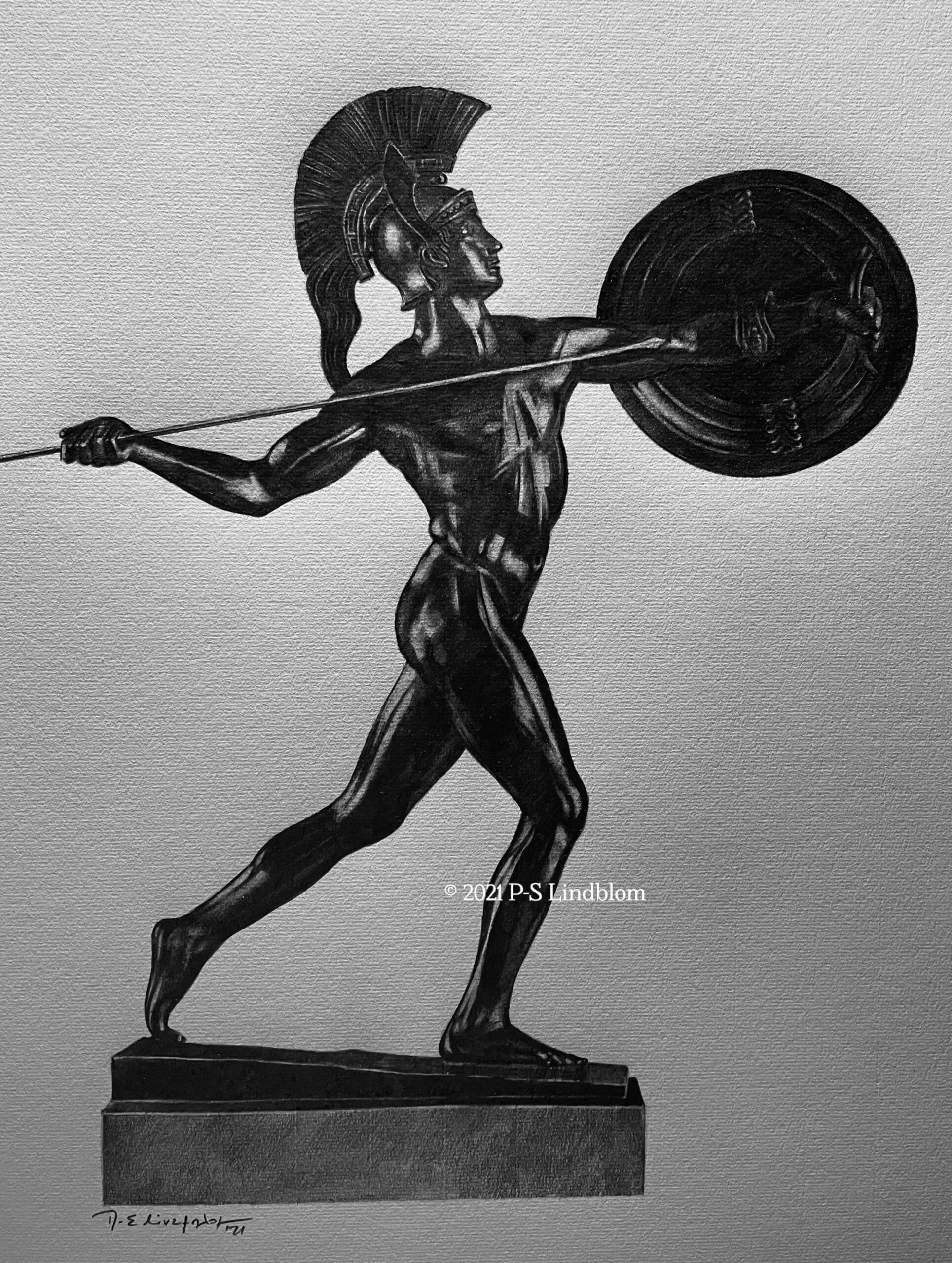 A pencil drawing of the bronze sculpture Achilles / Javelin Thrower created by Wilhelm Wandschneider (1866-1942) created in 1890.