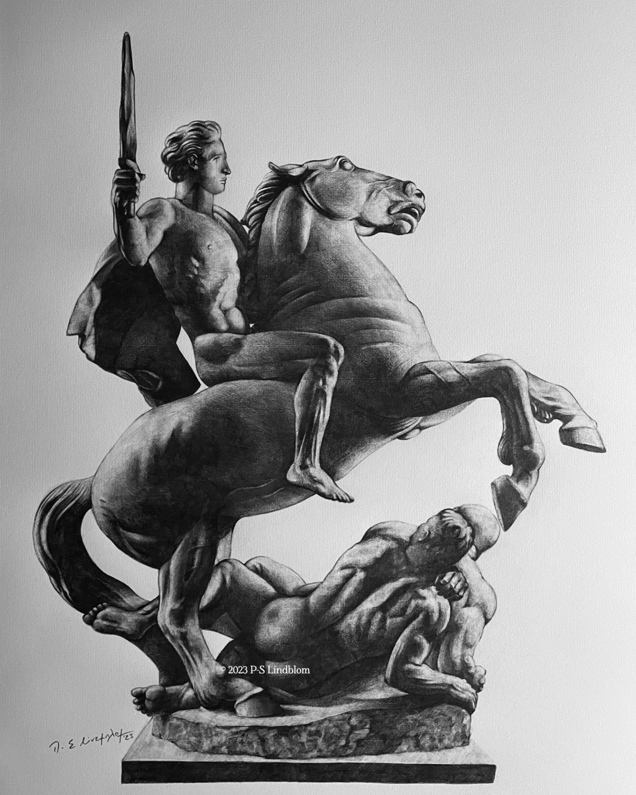 A pencil drawing of the equestrian statue “Freiheit” / “Freedom” created by German sculptor Josef Müllner, created between 1928-1941. Unfortunately there is no further information about this statue.